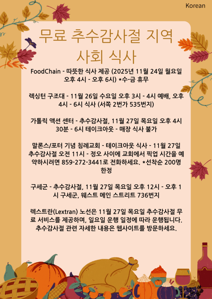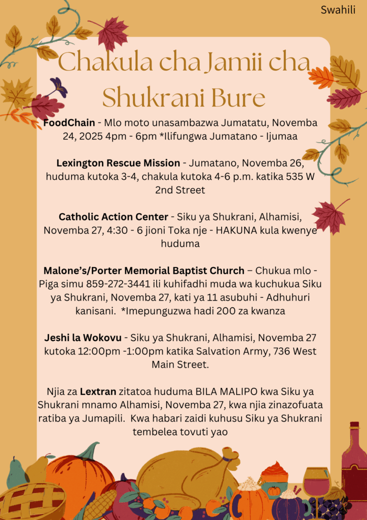 Lextran – Free rides on Thanksgiving. See Facebook for updates.